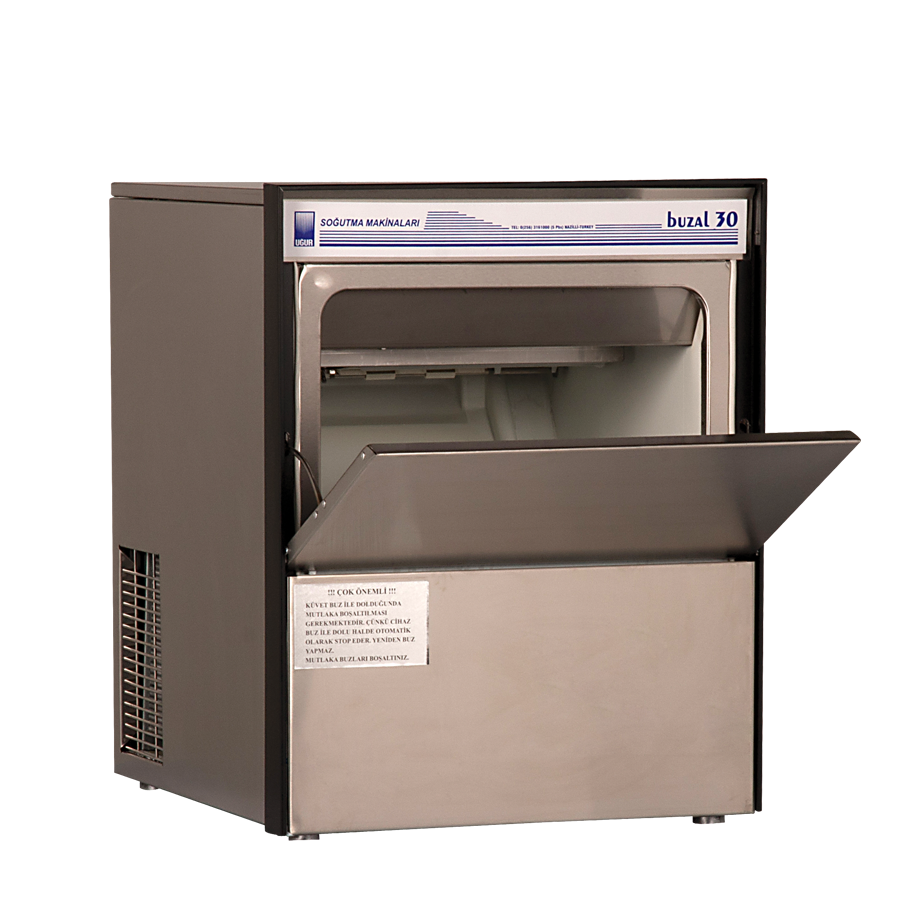 UBM 30 Buz MakinesiKapasite: 32 kg / 24 saat Dış boyutlar: 520x625x660 mm Su şebekesine doğrudan bağlanabilen, paslanmaz gövdeli sanayi tipi buz makinesi ,Derin Dondurucuları ,Uğur Dikey Şişe Soğutucular